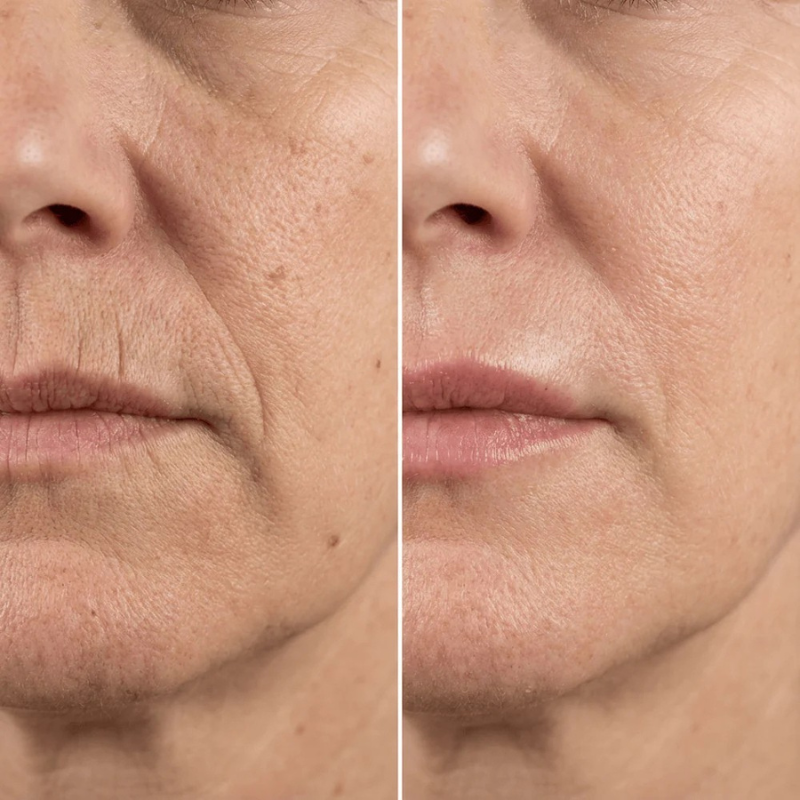 Les effets sur l’apparence des rides et de la fermeté deviennent visibles au fil des utilisations régulières.
