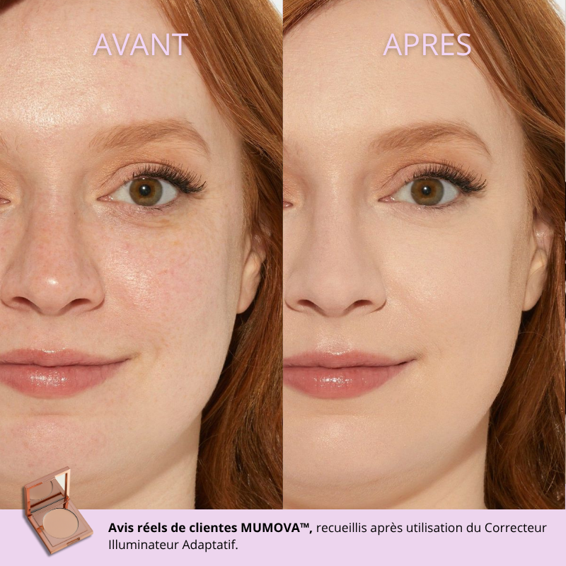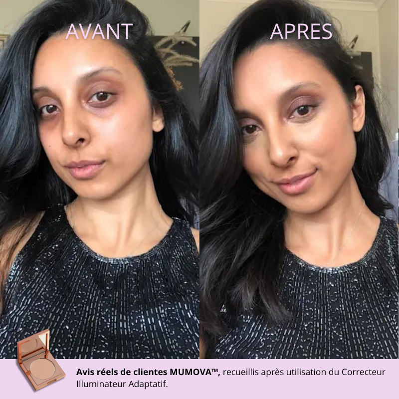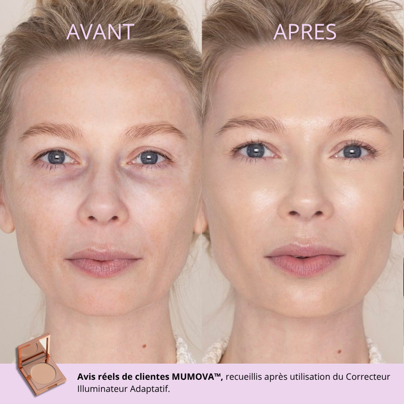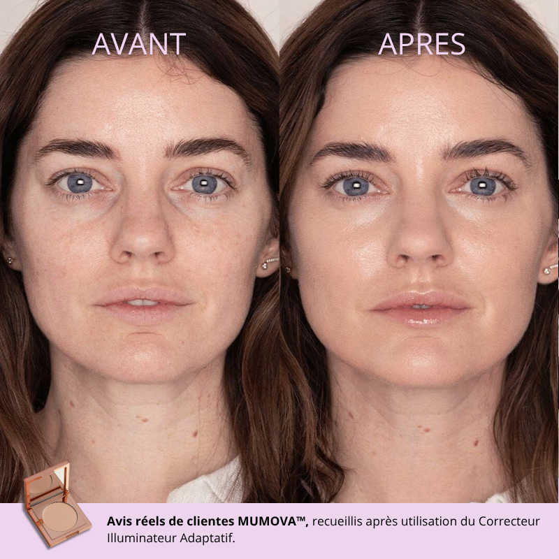 “Je travaille tard, et mes cernes étaient devenus impossibles à cacher. MUMOVA les floute naturellement tout en hydratant. Le regard est plus doux, plus reposé. Un indispensable.”